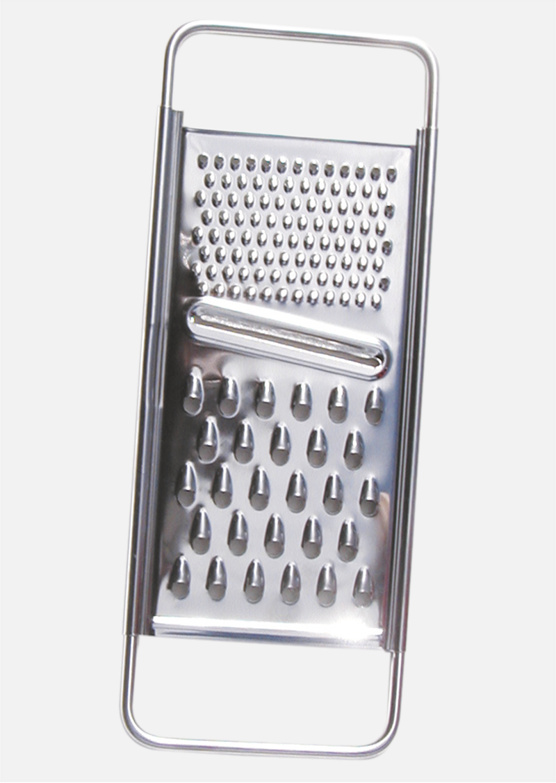 Râpe en inox avec 3 formats de coupe pour râper les légumes, les fruits, le fromage, le pain… Cet accessoire est un incontournable de la cuisine. La râpe s’entretient facilement et est recyclable.