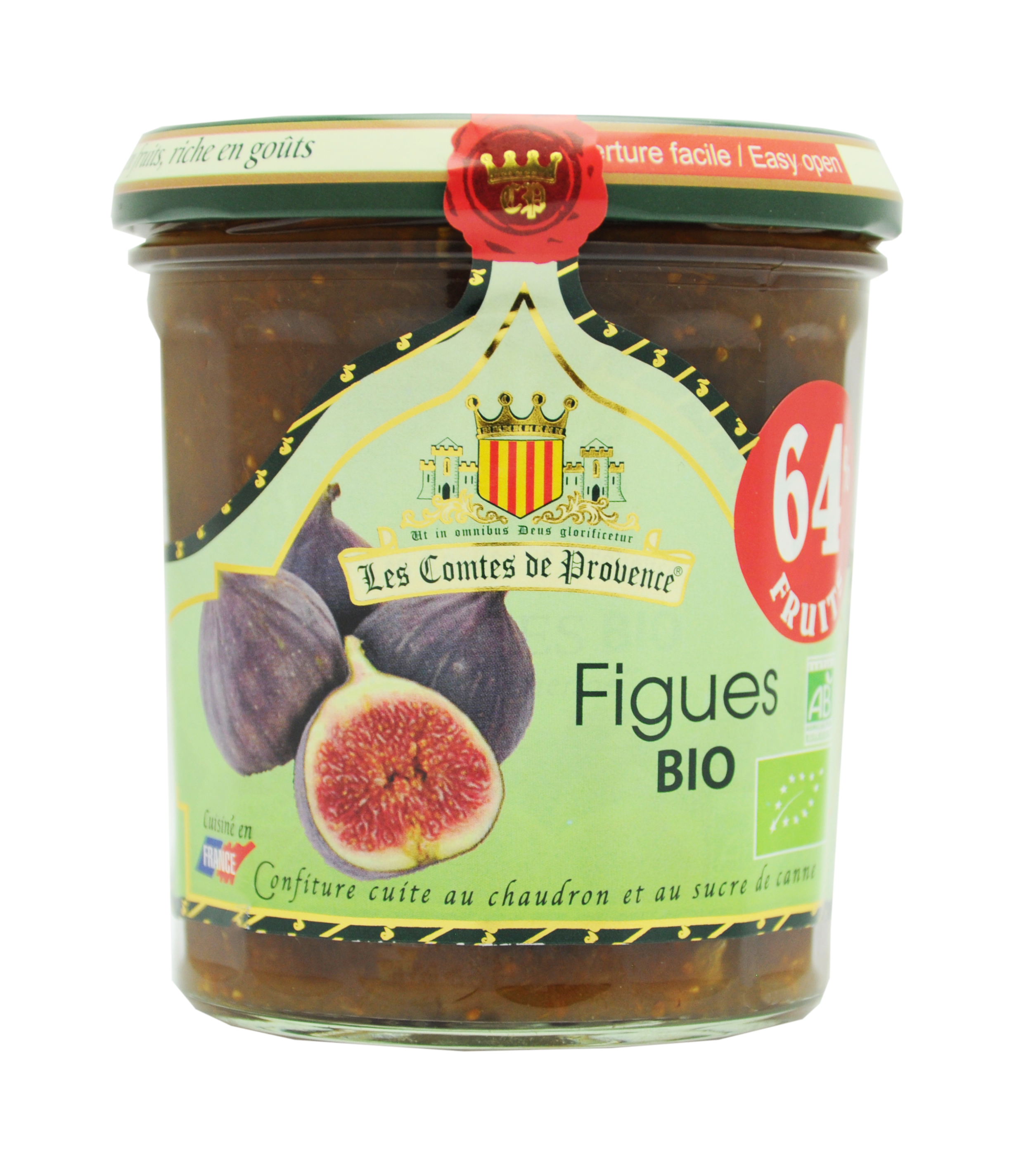 Préparée avec 64% de fruits, cette confiture de Figues est cuisinée au chaudron.Ingrédients: Figue* (62.95%), Sucre de canne*, Acidifiant: jus concentré de citron*, Gélifiant: pectine de fruits. (* Issus de l'agriculture Biologique).