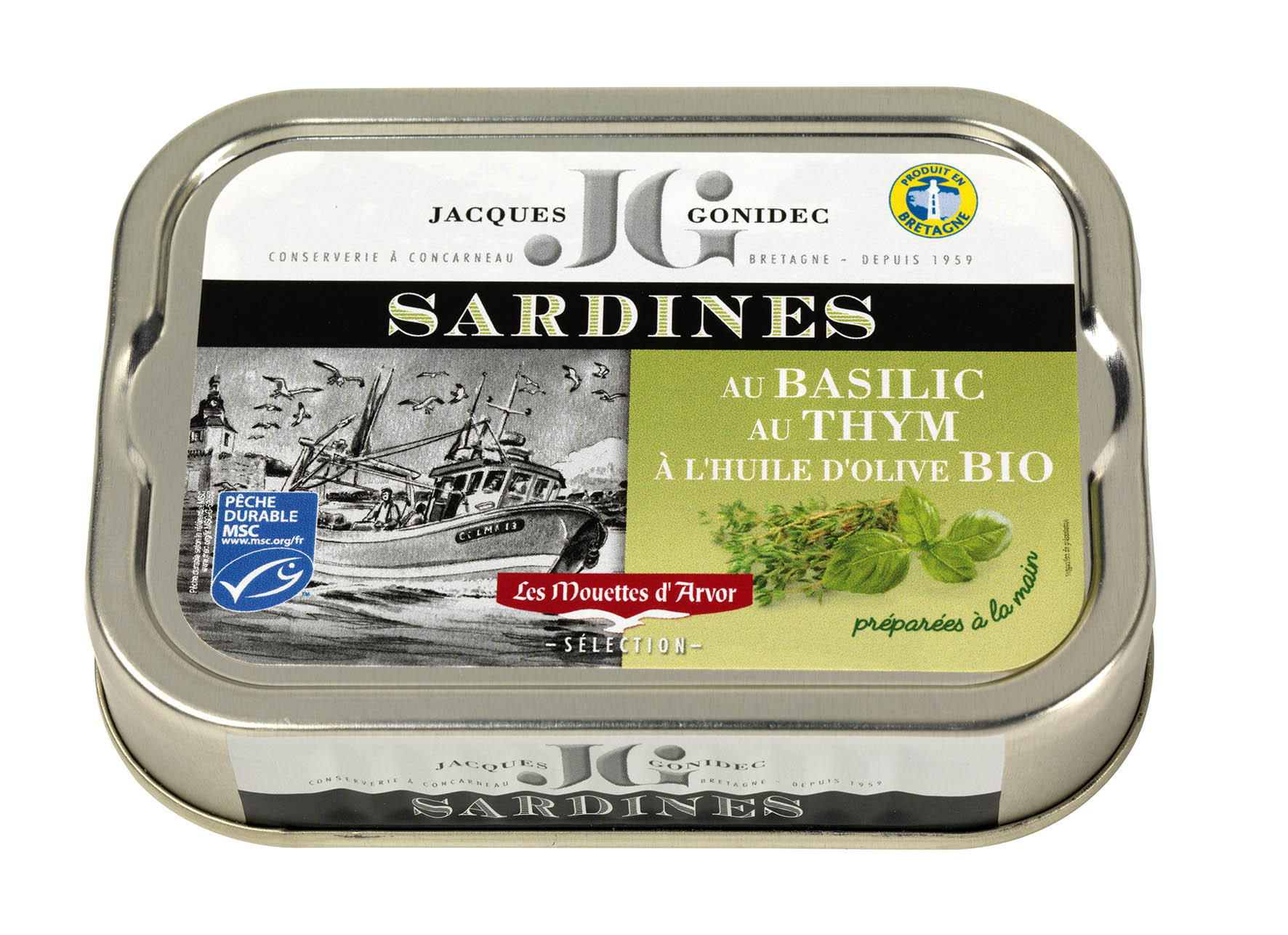 Un produit rare, profitez de la qualité et du goût des sardines.Ingrédients: sardines 75%, huile d'olive vierge extra* 24%, basilic* 0,4%, thym* 0,2%, sel.