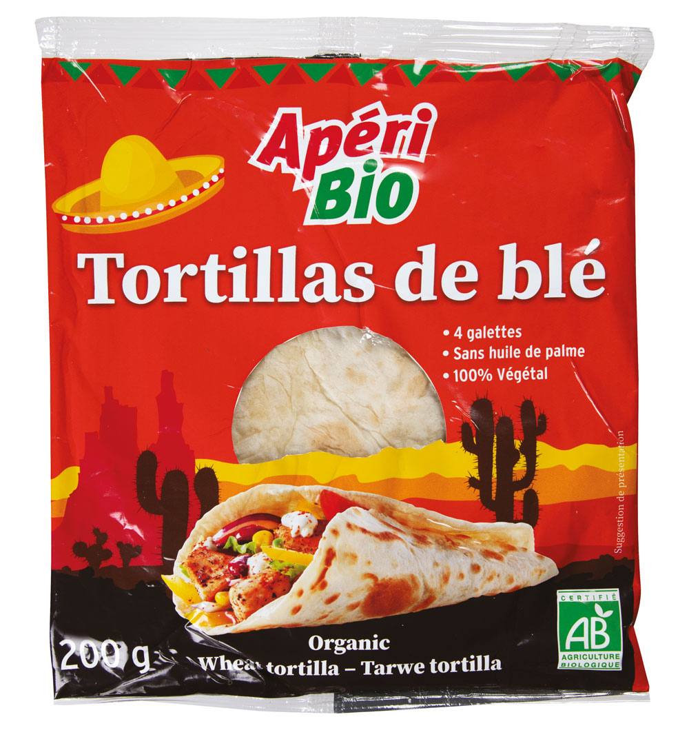 Farine de blé*, eau, huile de tournesol à haute teneur en acide oléique*, sel, épaissisant : gomme de guar*, arôme naturel d'olive*. *Issu de l'agriculture biologique.