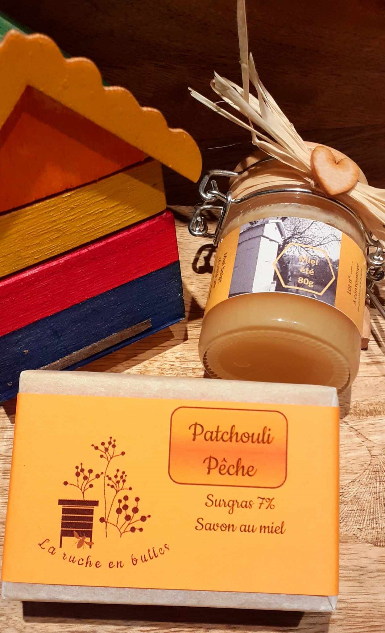 Ingrédients (*Bio): Huile d’Olive*, eau, huile de Coco*, soude caustique, huiles de Ricin* et de Tournesol*, huile essentielle de patchouli*, Fragrance « fleurs de pêcher », huile végétale d’amande douce*, Cire d’abeille, Sel de Guérande, Argile blanche*. Allergènes: Linalool