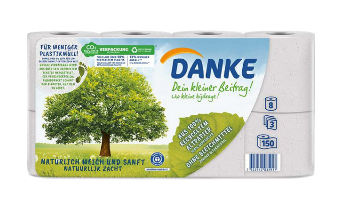 Papier hygiénique avec 3 feuilles de 8 maxi-rouleaux.