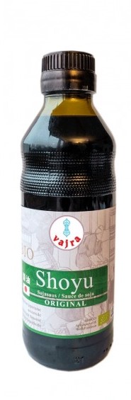 Le shoyu Vajra est une sauce de soja, un condiment salé pour vos plats de céréales, pâtes, légumes cuits et crus. Le shoyu, est une délicieuse et excellente alternative au sel (moins d'impact sur les reins). Riche en ferments actifs, le shoyu favorise une meilleure digestion. Le shoyu est fabriqué suivant la méthode artisanale traditionnelle, au Japon, contrairement aux sauces de soja élaborées dans les usines de soja modernes par des méthodes artificielles de fabrication. La qualité et l'ârome du shoyu résident principalement dans la lactofermentation, en cuves d'acacia, des fèves de soja et de blé complet (à partir du ferment naturel appelé koji) durant 18 à 24 mois. Contient du blé.