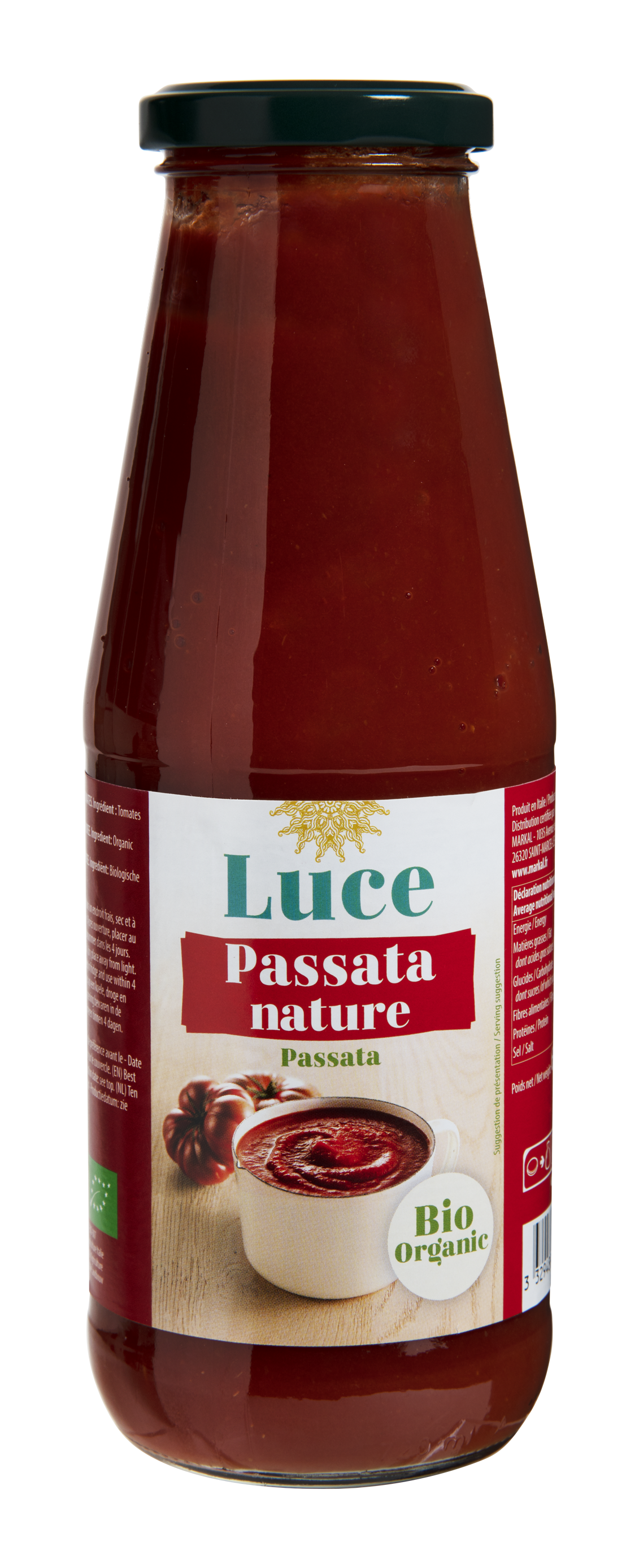 La passata nature La Bio Idea est fabriquée dans la pure tradition Sicilienne, à partir de tomates rondes. Elle sera idéale pour élaborer toutes vos recettes de sauce tomate.Ingrédients: Tomates biologiques.