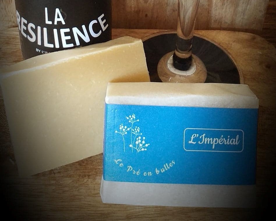 A base de cette délicieuse blonde, la Résilience, brassée à Thuillies et qui offre au savon les bienfaits de la levure qu’elle contient (sels minéraux, protéines, oligo-éléments et vitamines). On voue d’ailleurs à la levure des propriétés anti-eczéma et anti-acné, propriétés renforcées par l’huile de chanvre.