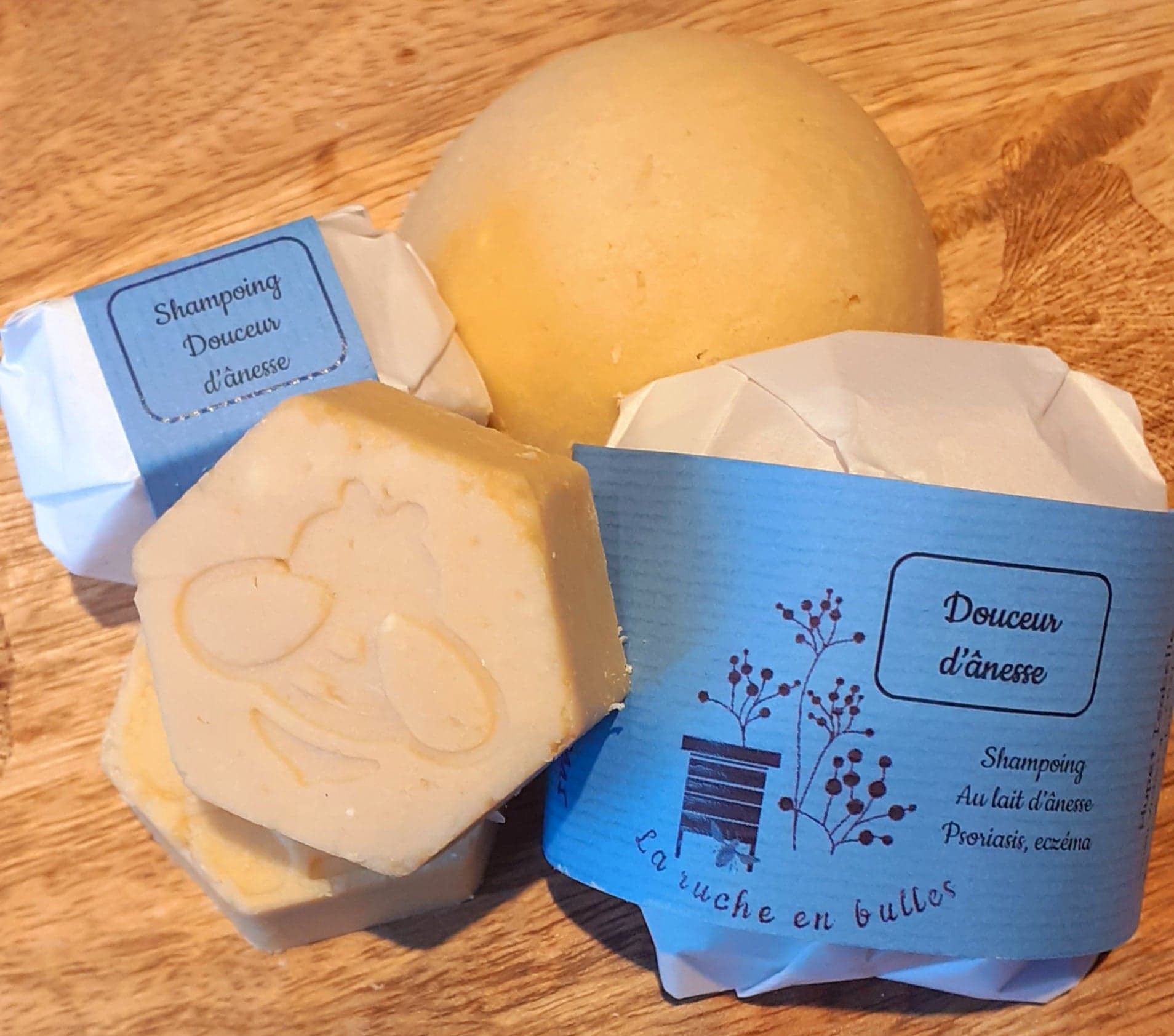 Ce shampoing solide au lait d’ânesse, au miel et à la cire d'abeille nourrit, hydrate et adoucit vos cheveux.