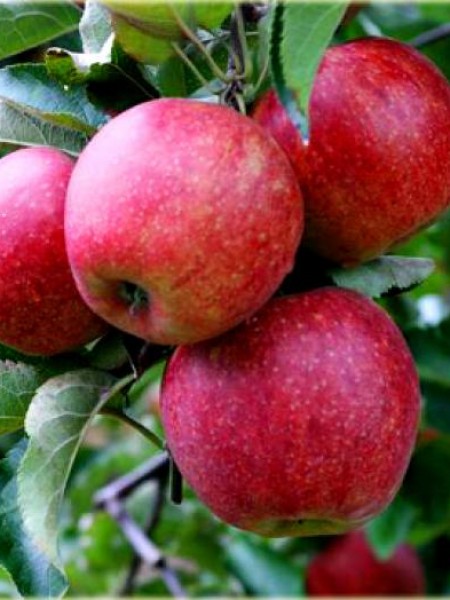 Aspect : pomme très attractive à chair jauneColoration : rouge foncé, non striéeGoùt : croquante, juteuse et très sucrée