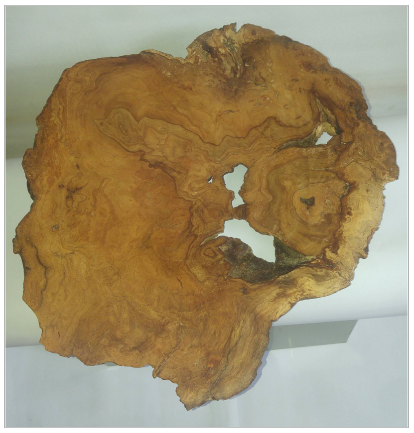 Plateau tourné dans une loupe de chêne.