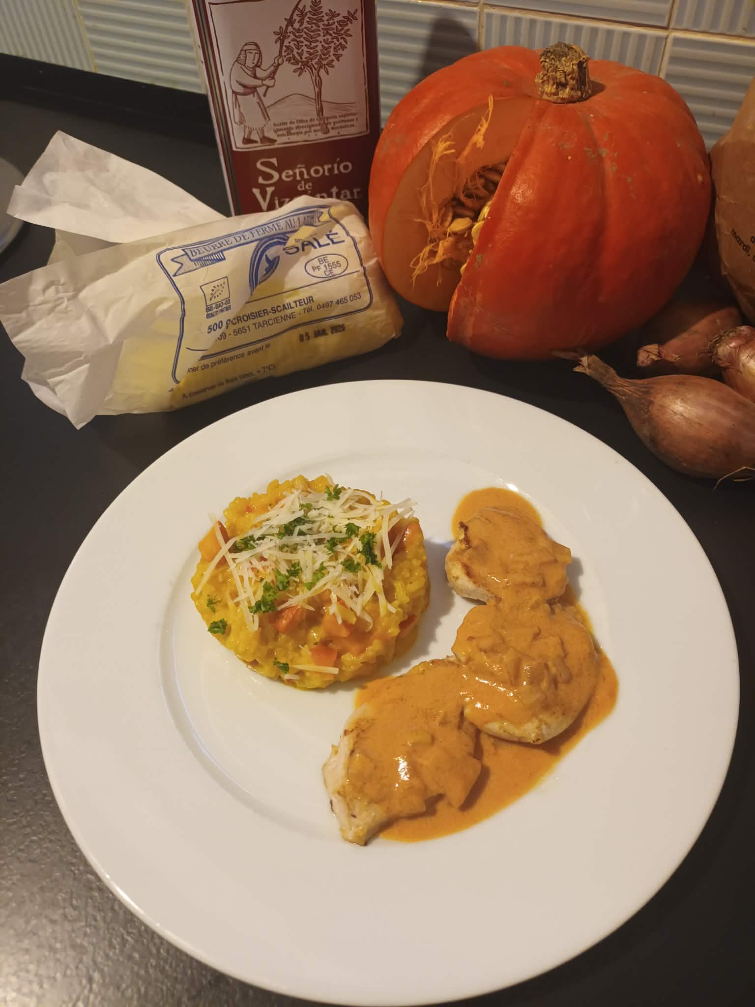 Pour cette halle du 17 décembre, dernière de l'année 2025nous vous proposons un plat 100% Halle concocté par Lydie :- Risotto au potimarron- Sauté de veau- Sauce entre sambre et meuse