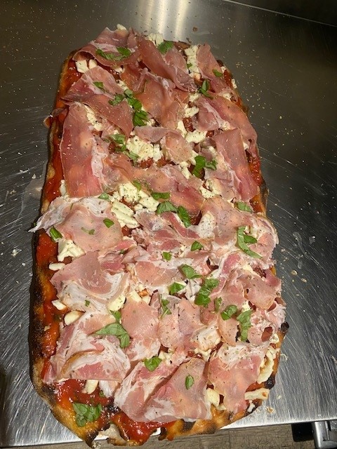 Une édition spéciale de la pinsa 4 saisons où les champignons sont remplacés par du jambon de parme.