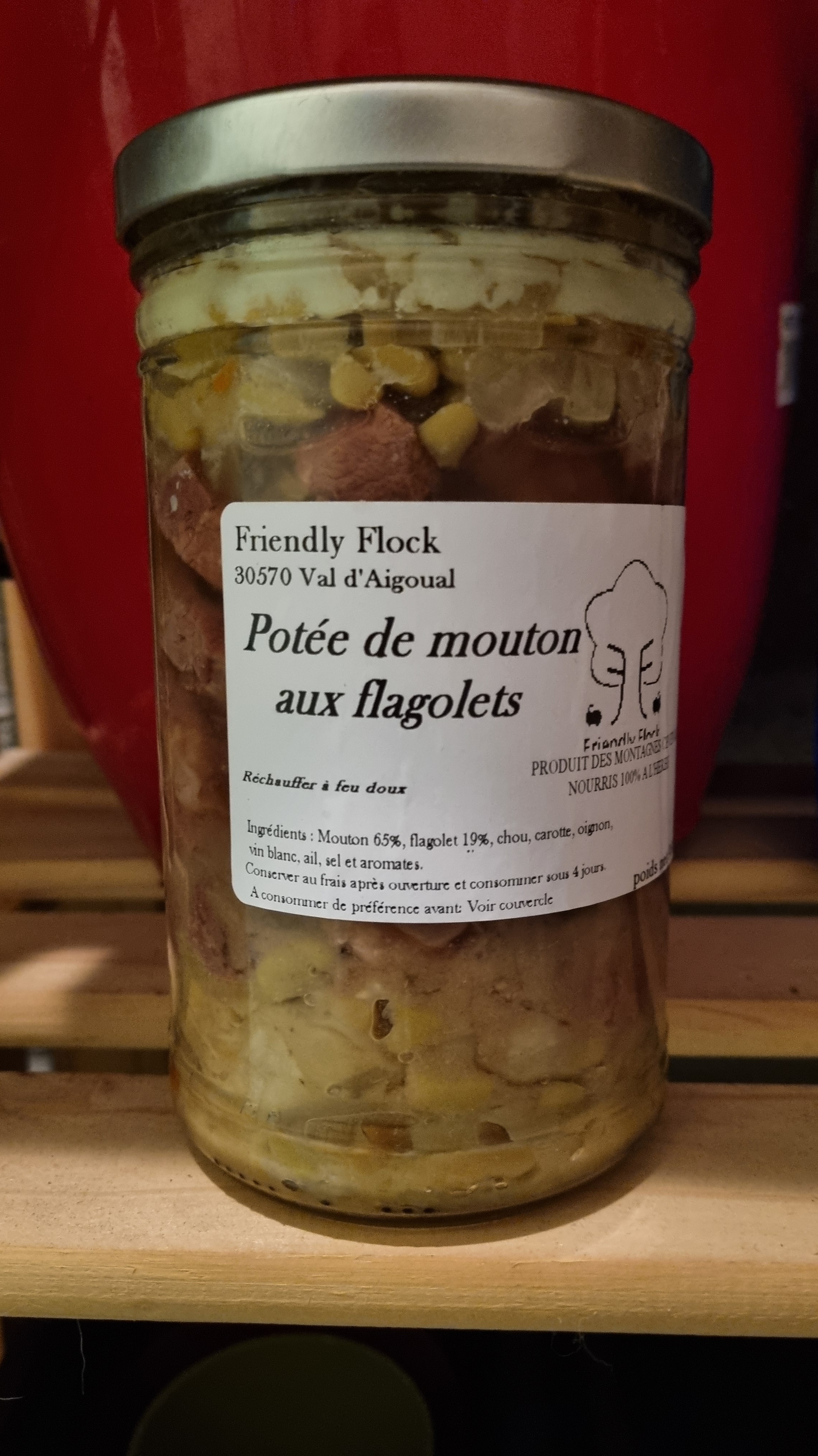 Mouton (65%) - Flageolets (19%) - Chou - Carotte - Oignon - Vin blanc - Ail - Sel – Aromates
